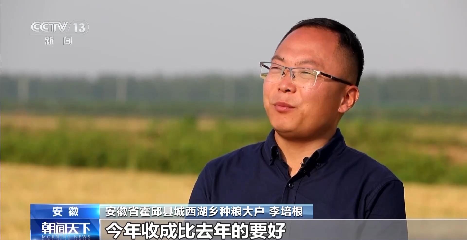 安徽省霍邱县城西湖乡种粮大户 李培根:我们今年种了2000多亩小麦,今年收成要比去年好,每亩地多100多斤,我们一亩地能达到1100多斤。