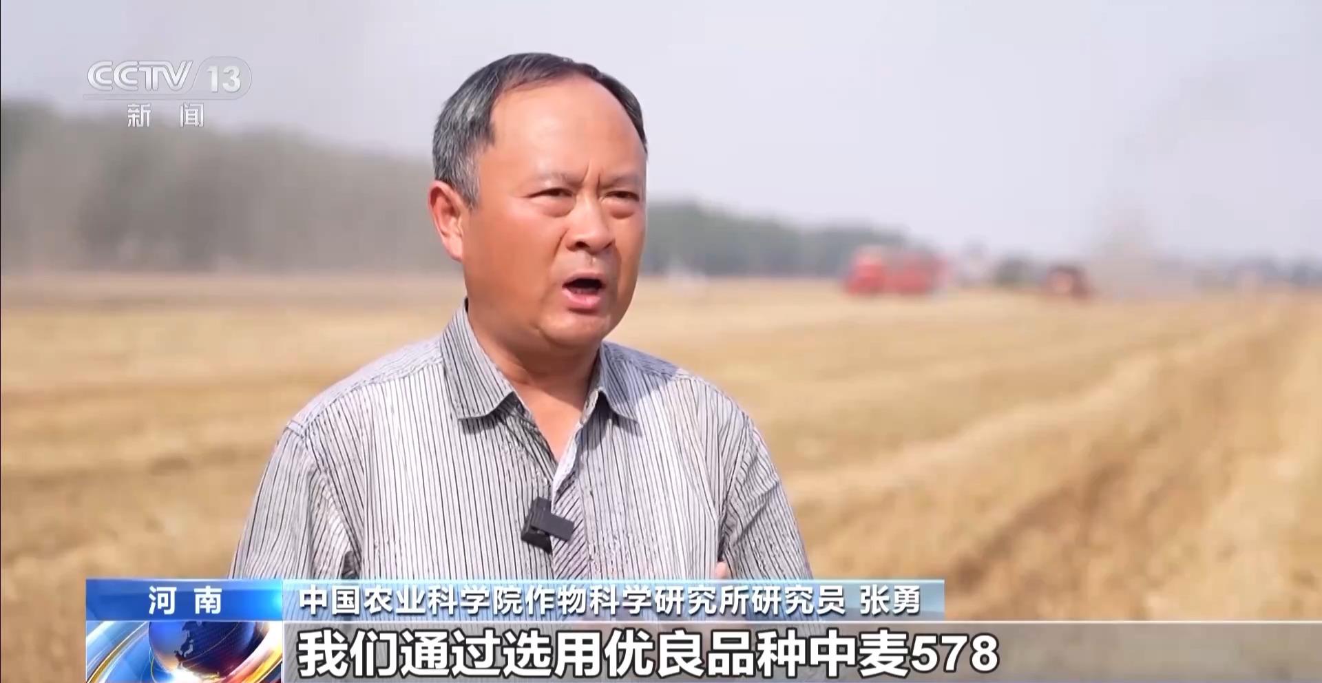 中国农业科学院作物科学研究所研究员 张勇:我们通过选用优良品种中麦578,通过适期的晚播,播前播后镇压,一喷三防,每亩比咱们的周边地块要增产200斤。