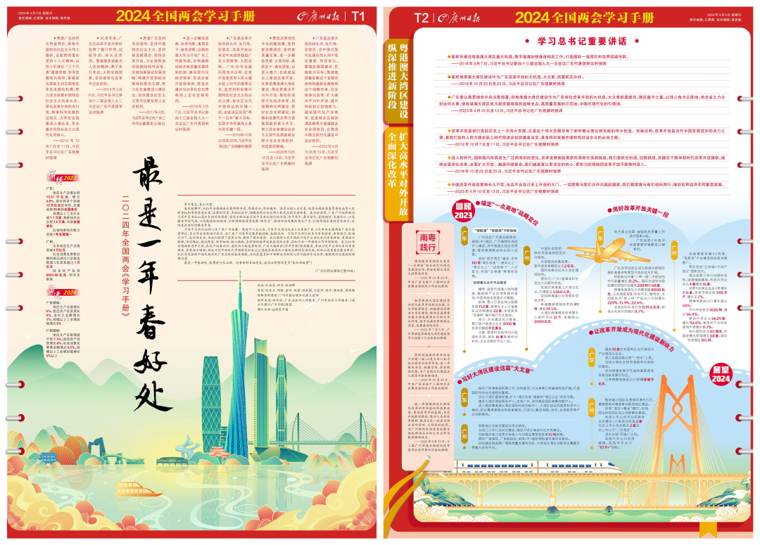 2024年3月3日《广州日报》全国两会学习手册版面图。