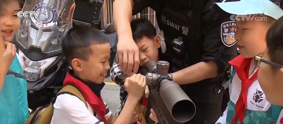 在上海,警察叔叔走进校园,通过精心设计,将安全教育融入到各种体验、互动、游戏中。活动现场,特警小哥直接带来手枪、狙击枪、警用摩托等,逐一演示、讲解,瞬间收获了一批小迷弟。