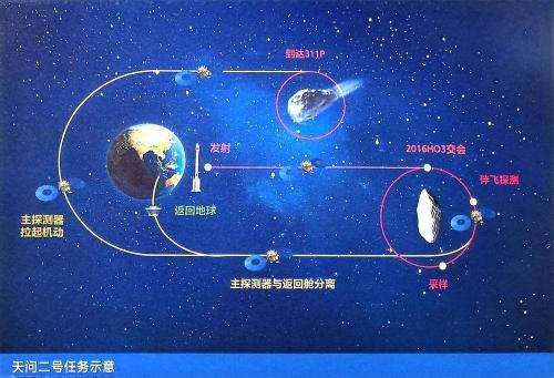 天问二号主要任务目标是对小行星2016HO3进行探测、取样并返回地球,此后再对主带彗星311P开展科学探测。小行星2016HO3是人类目前发现的地球准卫星之一。