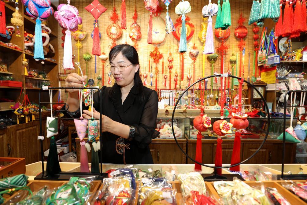 2025年5月25日,安徽省淮北市,非遗香包上货架。(图片来源:视觉中国)