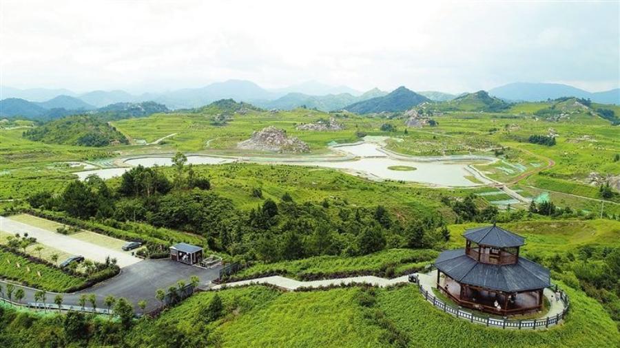 让废弃矿山重披绿装变成“金山银山”,打造为长江经济带生态治理示范、工业绿色发展示范,是寻乌实施“生态+”取得的一个重要成果。该县废弃矿山柯树塘生态修复工程,入选2024年全国国土空间生态修复典型案例。近日,记者来到这里,但见绿意葱茏处,一排排光伏板熠熠生辉,游客在骑行绿道上蜿蜒穿行。这片14平方公里的土地曾是“遍体鳞伤”的稀土矿区,经过多年的一体化治理、系统性修复,终于重现绿水青山,成为一道独特的生态景观,每天都吸引众多游客来此“打卡”。