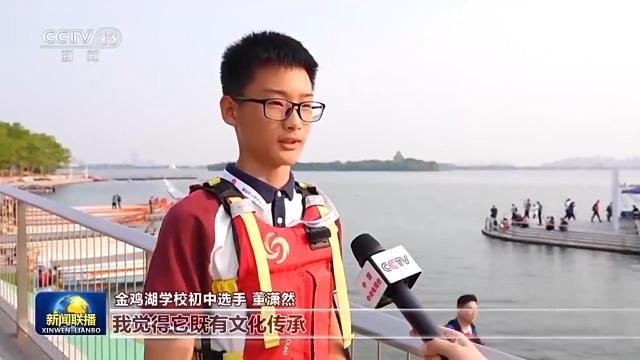 金鸡湖学校初中选手 董潇然:我觉得它既有文化传承,又能帮我加深和同学之间的友谊。因为一个人划不好,整个队伍都可能落后,所以这是培养团队精神的很好方式。