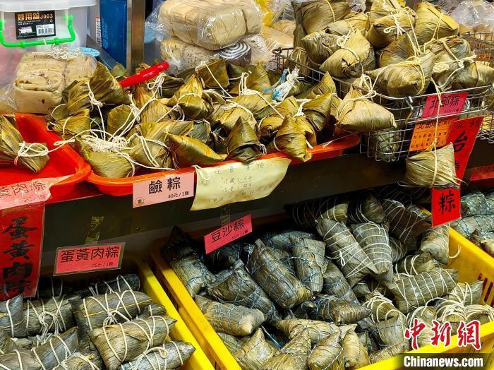 台湾端午节连假期间,台北南门市场的粽子种类丰富。中新社记者 张晓曦 摄