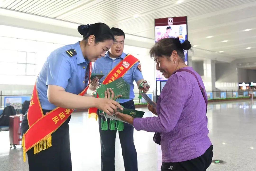 再看阜新站,制作了精美的端午活动海报和宣传册,上面有“我的铁路风景”互动平台入口,旅客们纷纷拿出手机扫码投稿,分享自己在旅途中拍摄到的铁路好风景,现场气氛欢快。