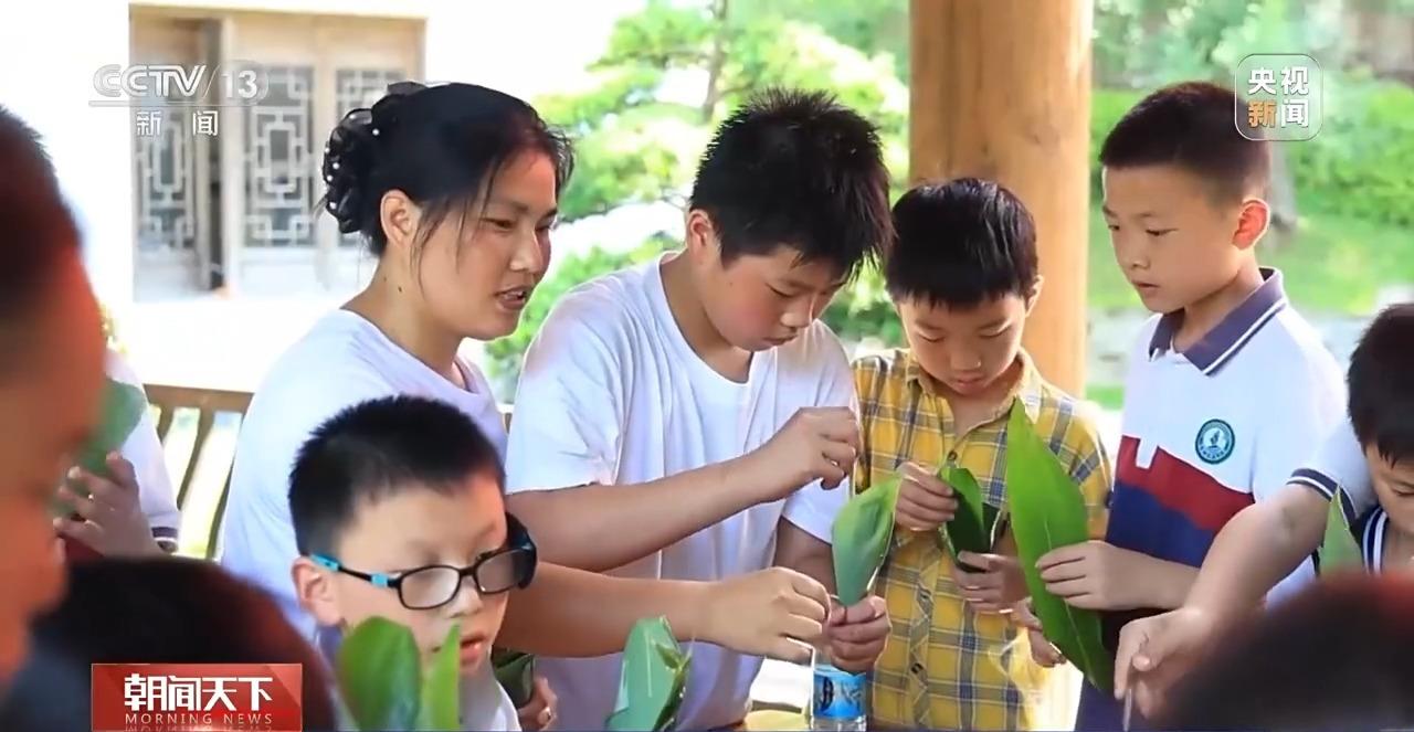 游客 周子菱:学会了自己动手包粽子,还学到了很多关于粽子的知识,知道粽叶要提前煮熟才能变软,绳子要交叉绑,粽子才不会散。