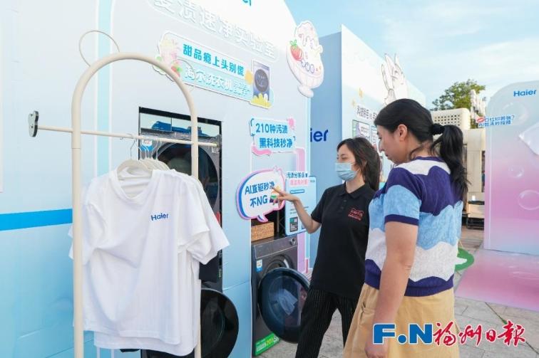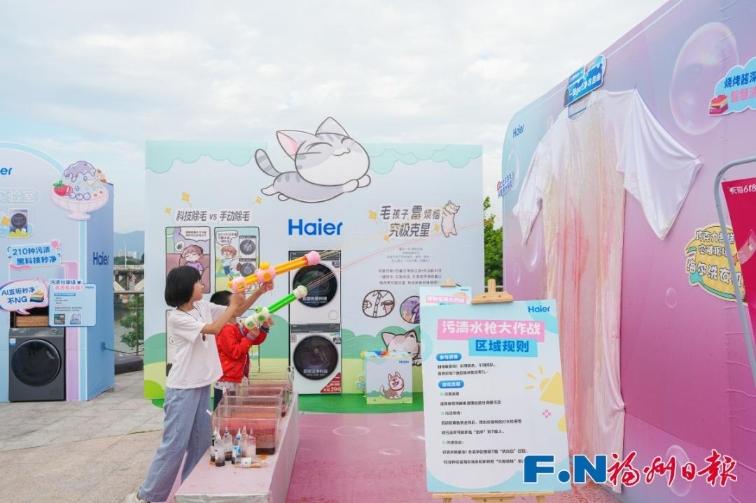 除了房产项目展示,展会还邀请供水供气单位福州市自来水公司、华润燃气,海尔等家装设计品牌、智能家电品牌参展,全方位满足市民居家生活需求。其中,“甜品渍实验室”科学挑战、“萌宠除毛专区”效果实证、巨型“白T”艺术装置互动三大核心场景提供了扎实的智慧生活解决方案,吸引观众驻足观看。