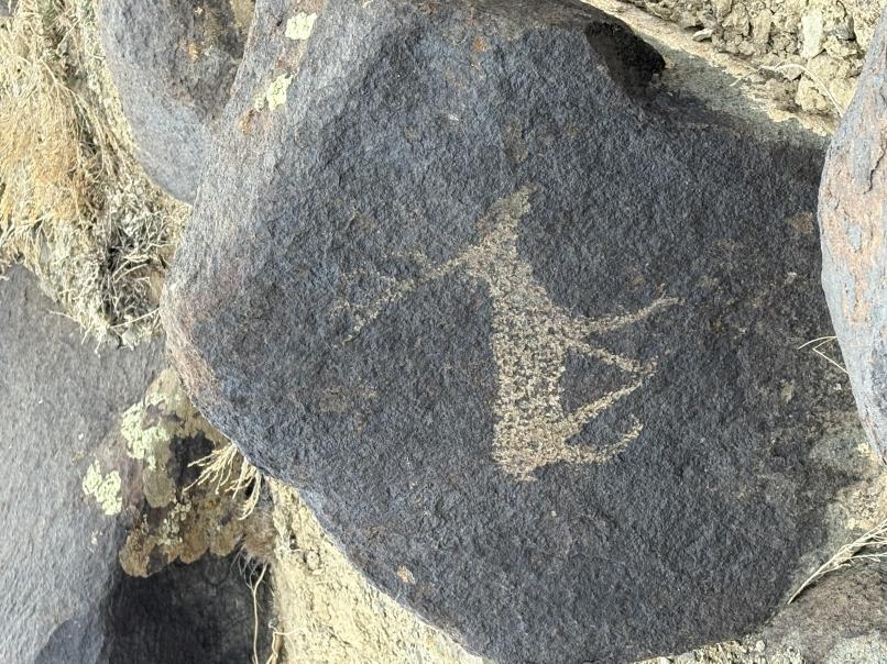 无独有偶,在第四次全国文物普查中,除博州外,阿勒泰地区、哈密市也有岩画新发现。4月,青河县的吾勒肯布勒合岩画被列入“四普”新发现。60幅以点线凿刻的岩画清晰可辨,既有生动的狩猎场景,也有古人对生命繁衍的崇拜。其中,鹿、骆驼、马等十余种动物栩栩如生,夸张的鹿角极具艺术感染力。