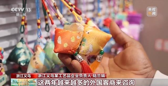 浙江义乌某工艺品企业负责人 陆兰娟:以前香囊的消费群体以国内为主,这两年,越来越多的外国客商来咨询。前年卖出了15万个左右,去年订单翻了一番,有30万个。那今年的订单也明显超过了过去,尤其是新加坡、马来西亚、越南这些地区的客商明显增多。