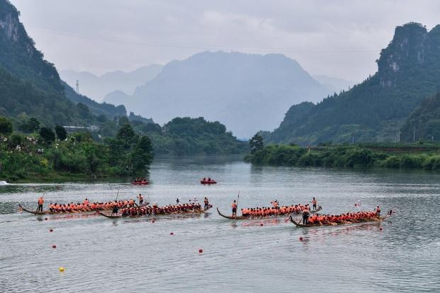 鼓声阵阵,浪花飞溅。5月31日,在清水江畔,第十二届渝湘黔三省(市)边区龙舟邀请赛在重庆秀山土家族苗族自治县洪安边城景区拉开帷幕。来自渝湘黔的16支龙舟队在清水江上展开激烈角逐,与洪茶渡口上高亢的苗族山歌、洪安老街上锣鼓铿锵的苗狮交织,重现沈从文笔下《边城》故事里的端午节庆。