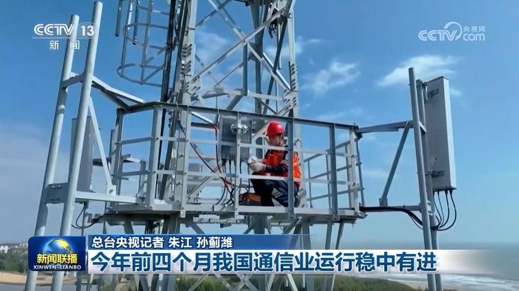 央视网消息(新闻联播):记者从工业和信息化部获悉,今年1—4月份,我国通信业整体运行稳中有进,移动互联网接入流量保持较快增长;5G、千兆光网、物联网等新型信息基础设施建设稳步推进。