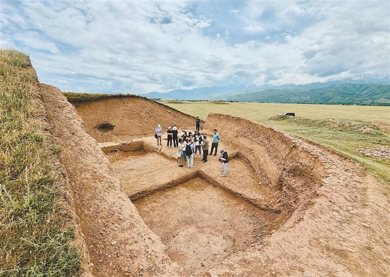 陕西省考古研究院研究员丁岩在考古现场介绍说,中哈联合考古队目前已发掘出高台遗址、聚落遗址及多处墓葬,为研究丝路沿线城市变迁、民族融合提供了珍贵实物资料。陕西省考古研究院与伊塞克博物馆的合作,开创了中亚地区跨国考古的典范,印证了文物作为“无声外交官”的独特价值。丁岩表示,“自2017年起,每年前往哈萨克斯坦的首要工作便是在拉哈特遗址开展考古发掘,推进和深化相关研究。截至目前已取得三方面重要收获:第一,通过对遗迹结构布局及其内涵变迁的研究,深化了对其历史演变的认知;第二,伊塞克M8号大型墓葬封堆,让我们对其构筑方式有了新认识——区别于中国同期大墓平行逐层夯筑、短期完成的特点,这里的大墓采用弧状逐层堆积,历经数十年甚至上百年逐渐形成;第三,中哈双方在考古研究与历史文化交流等合作中达成诸多共识,专业上的相互认可为后续工作奠定了坚实基础。”