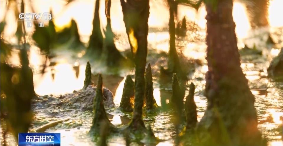总台记者 王洁:向上生长的气根,种类繁多的底栖生物,密密匝匝的红树林,这里是广西北海滨海国家湿地公园。