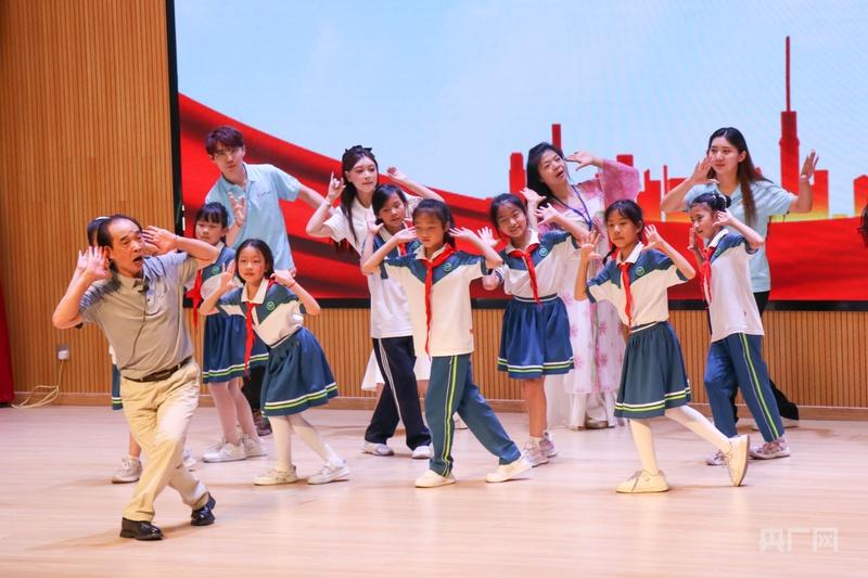 松山小学师生跟着省级非遗传承人学习花鼓戏身眼手法(央广网记者 刘培俊 摄)