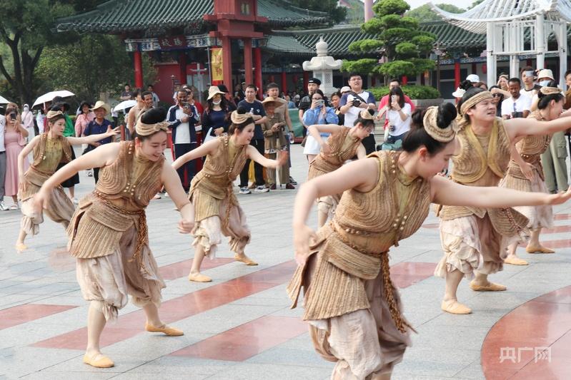 南昌滕王阁景区,舞剧《天工开物》快闪表演吸引游客目光(央广网记者 刘培俊 摄)