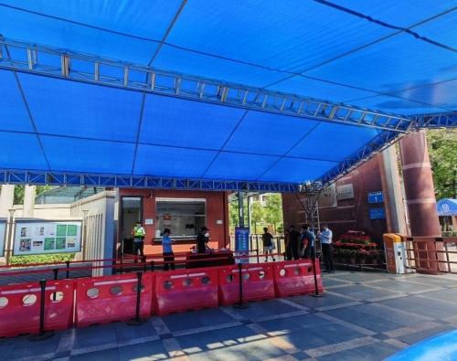北京市气象台预报显示,7日白天晴转多云,最高气温32℃。北京一零一中学提前搭设红色晴雨走廊,考生进入后可直通候考区及考场。考场内还装有空调和静音排风扇,每间教室均有工作人员提前降温、通风、消毒。
