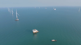在青岛天能重工股份有限公司,超大型海上风电塔筒设备整装待发,即将运往海上作业区进行安装。公司董事长黄文峰表示,公司海上风电订单量逐年增加,2024年订单占比已近40%。