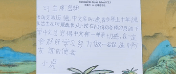 在精心制作的信笺里,艾哈迈德·穆罕默德(中文名:小虎)把自己的心愿也写进了给习爷爷的信里。
