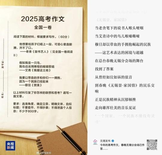 “无锡发布”公众号根据春晚无锡分会场内容作答高考作文题