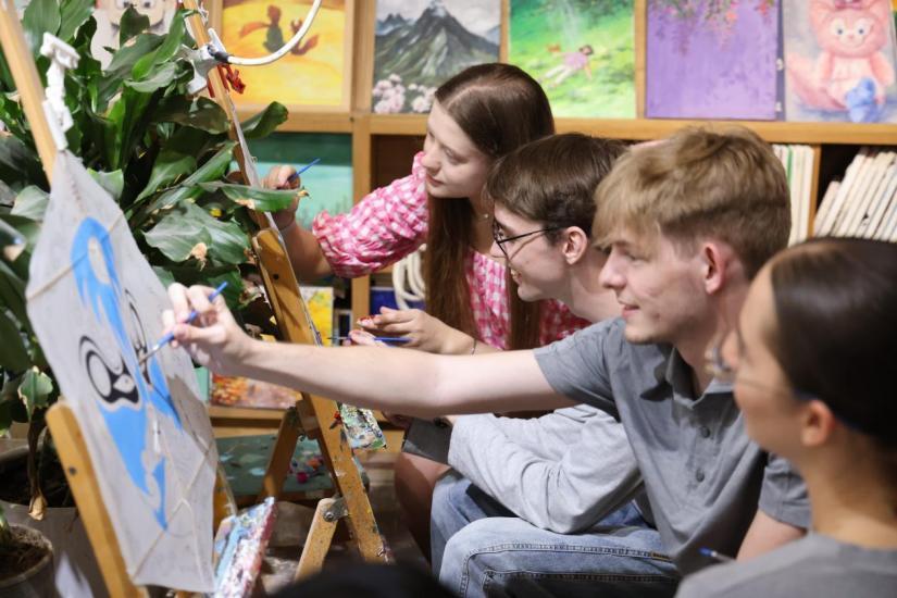 随后,留学生们在北仓绘画室参与画川剧脸谱或画川剧人物活动。解析红忠紫孝、黑刚粉奸等色彩密码。不同颜色的脸谱代表不同类型的人物,例如白脸代表阴险奸诈,就像曹操。留学生们在老师指导下,发挥想象力和创造力,描绘眼中的川剧脸谱,深入了解川剧文化,为脸谱艺术注入新活力和多元文化元素。