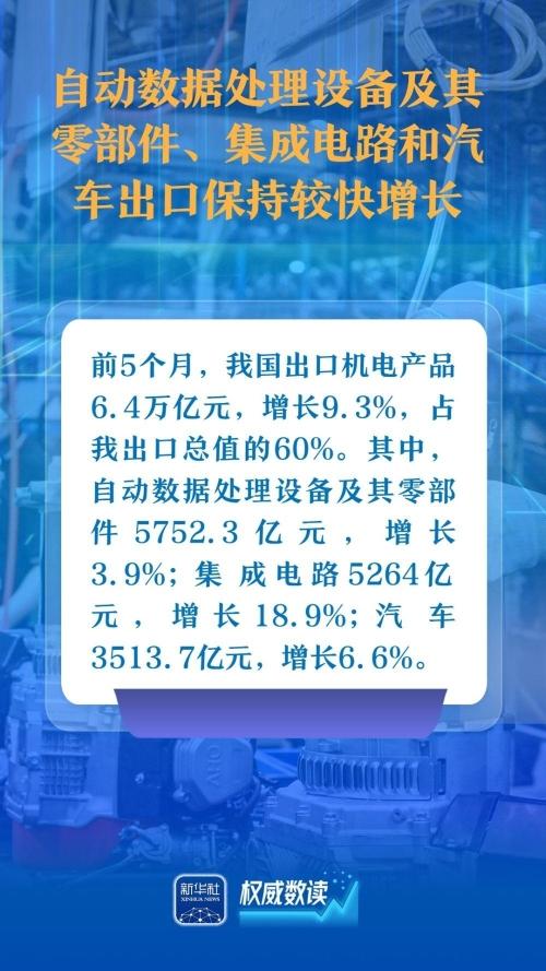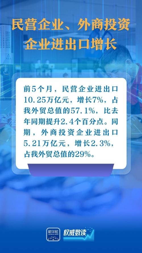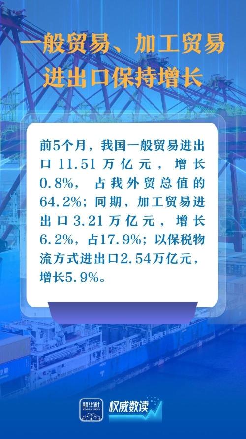 海关总署9日发布数据,今年前5个月,我国货物贸易进出口总值17.94万亿元人民币,同比增长2.5%。以下几组数据,展示出我国对外贸易在外部压力下依然保持较强韧性。