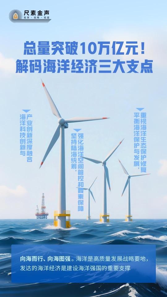 海风阵阵吹动白色风机,用“绿电”点亮万家灯火;海水波涛翻滚、潮起潮落,将汩汩动能送至千家万户;“蓝色粮仓”日渐充实,“中国饭碗”愈加丰富;深海深渊有数不尽的矿产、油气和生物基因资源亟待开发……从单纯的鱼盐之利、舟楫之便,到如今向大海要食物、要绿电、要淡水,海洋经济正成为拉动国民经济增长的重要引擎。
