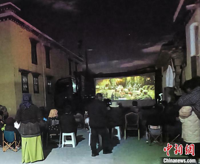 图为村民在夜幕下观看露天电影。达孜区委宣传部供图