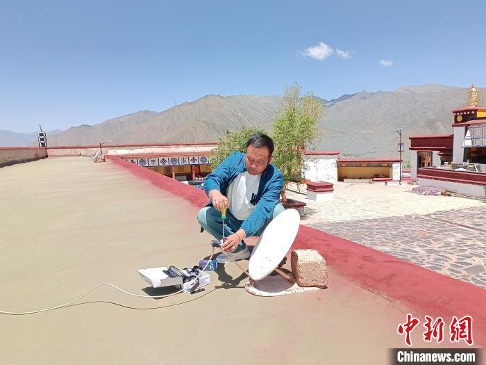 图为工作人员正在安装直播卫星户户通设备。达孜区委宣传部供图