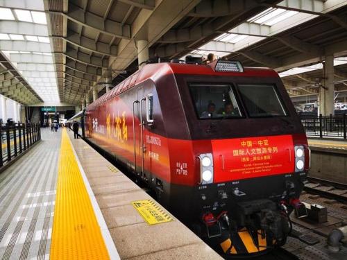 2025年5月29日,中国—中亚国际人文旅游专列(西安—阿拉木图段)从陕西西安首发开行。新华社记者 杨一苗 摄