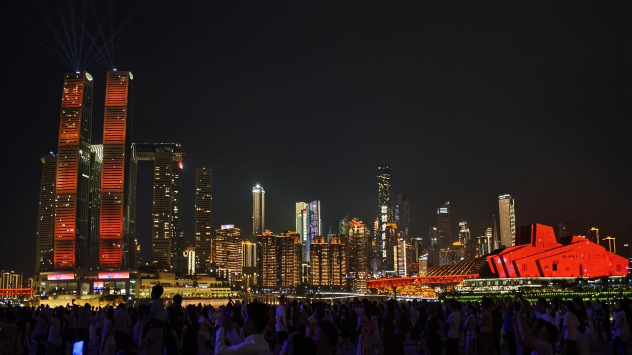 像徐先生一样的游客数不胜数,一场无人机灯光秀,为“两江四岸”的天台店铺带来了空前的流量。在南滨路、长滨路、朝天门、江北嘴等地的江岸边,以及各个高楼大厦的观景台上,挤满了来自五湖四海的游客。