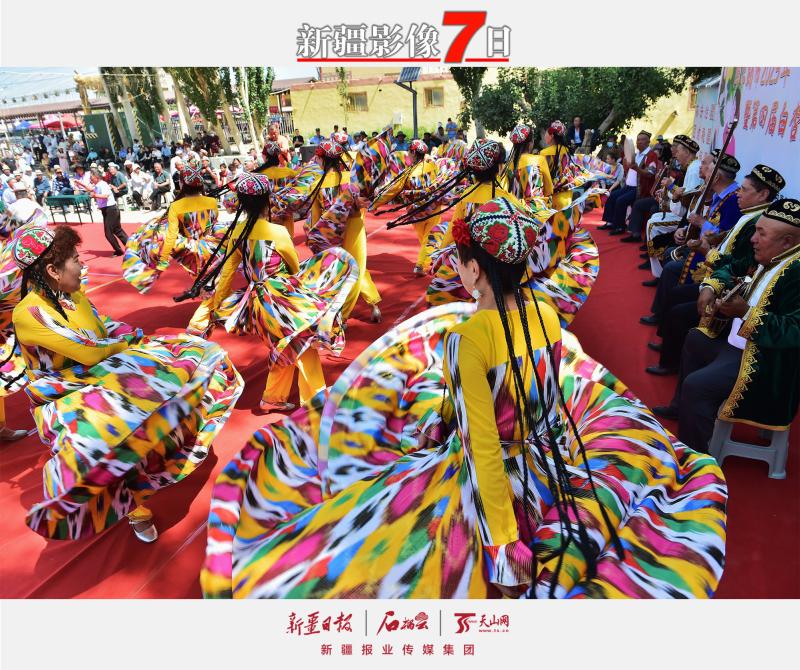 六月的巴里坤古城,晚风轻拂,德胜门旁各族群众跳起欢快的健身舞。库尔勒的吉格代巴扎热闹非凡,白杏飘香,各类展演吸引着往来游客驻足欣赏。