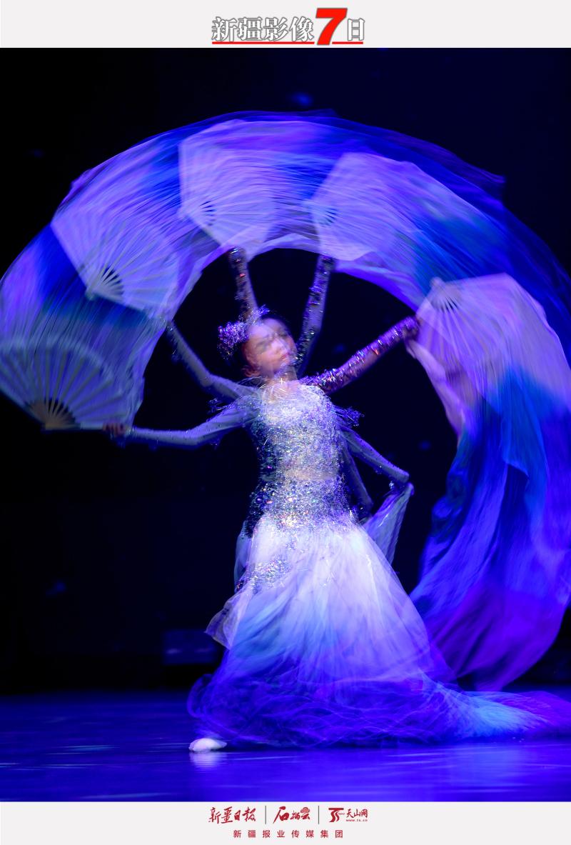 6月15日,小选手进行舞蹈比赛。(多重曝光)当天,青少年素质教育展新疆展示活动,在乌鲁木齐市启动。来自全疆各地的49组小选手齐聚一堂,通过舞蹈展演等形式,展现少年儿童的艺术风采。石榴云/新疆日报记者 韩亮摄