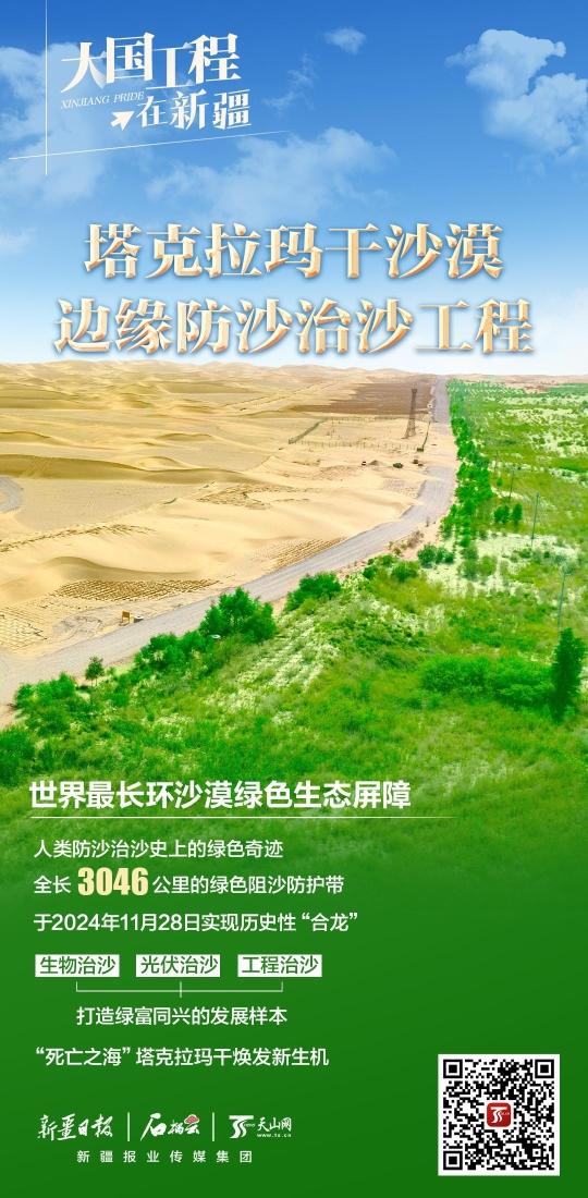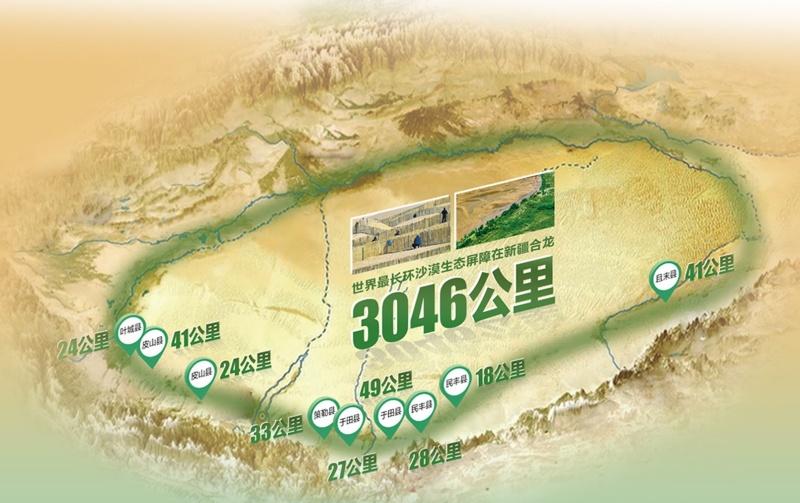 2024年11月28日,环绕塔克拉玛干沙漠边缘全长3046公里的绿色阻沙防护带“合龙”。