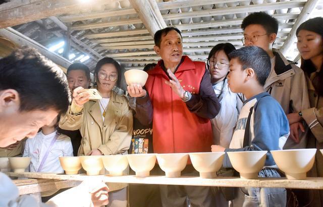 江西景德镇,志愿服务者正向游客讲述陶瓷制作工艺、技艺等陶瓷文化。