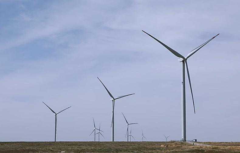 哈萨克斯坦札纳塔斯拍摄的札纳塔斯100兆瓦风电项目风机。图片来源:新华社