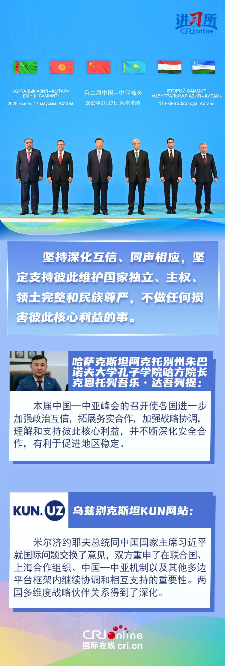 “在长期实践中,我们探索形成了‘互尊、互信、互利、互助,以高质量发展推进共同现代化’的‘中国—中亚精神’。”6月17日,中国国家主席习近平在哈萨克斯坦首都阿斯塔纳出席第二届中国—中亚峰会并作主旨发言,首次提出“中国—中亚精神”,为中国同中亚国家永久睦邻友好、打造更加紧密命运共同体提供了共同价值遵循,这是对世界之问、时代之问的有力回答。