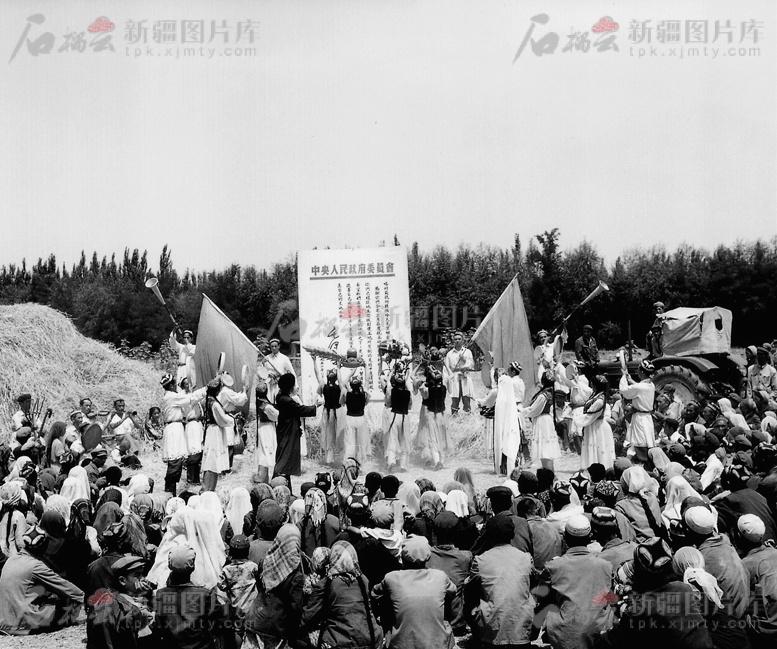 1962年,帕哈太克里乡农民欢庆毛主席回信10周年。图片由新疆图片库提供