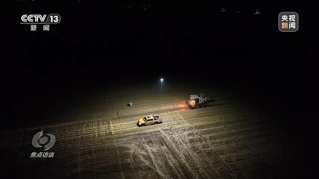 像放风筝一样,一个人从供电机牵线,另一个人控制无人机飞行,两人打好配合,灯随着车走。经过五次磨合试飞,600瓦的灯光终于刺破夜空,照亮了两亩麦田的区域。供电所技术人员的驻守,让吴从先家的小麦在暴雨来临前全部入仓。