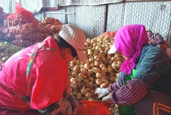 工人在挑选出口圆葱(央广网记者陈显春 摄)
