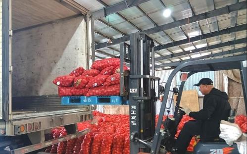 出口圆葱装车(央广网记者陈显春 摄)