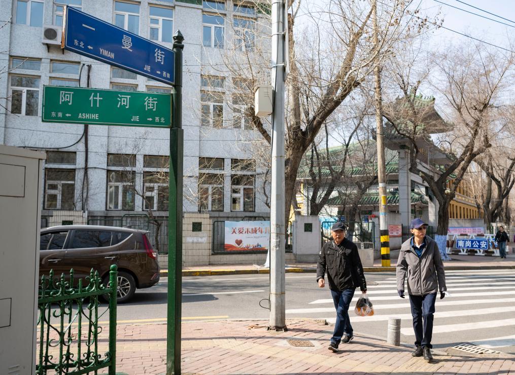 人们在黑龙江省哈尔滨市南岗区一曼街上行走(4月8日摄)。新华社记者 谢剑飞 摄