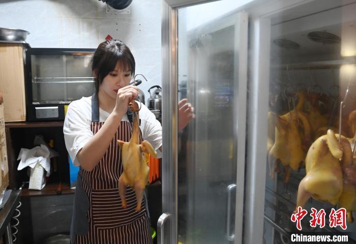 6月13日,林凤怡将鸡放进烤箱烤制。中新社记者 蒋雪林 摄