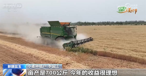 小麦种植户李国江称:“每天收割800亩,预计3天收完,亩产700公斤,今年的收益很理想。”