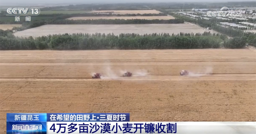 眼下,在塔克拉玛干沙漠南缘的新疆昆玉市,4万多亩沙漠小麦陆续成熟开镰收割。当地探索“良种+良法”的沙漠农业种植体系,助力小麦增收。