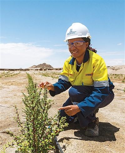 罗辛铀矿建立有效植物移栽机制。图为该公司员工正在维护移栽的植物。吴慧琳摄