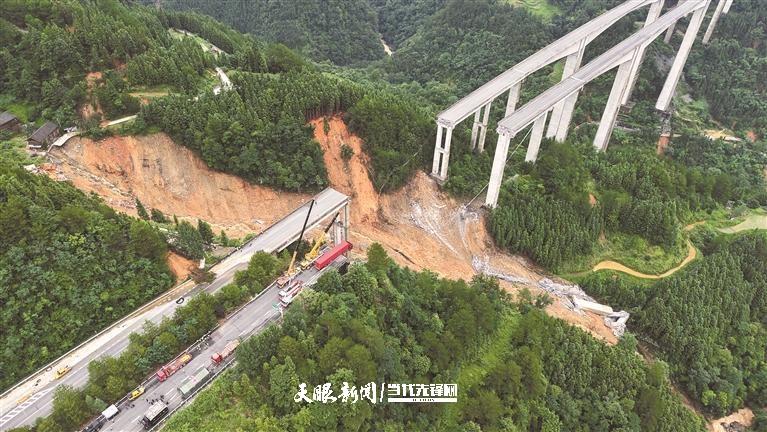 厦蓉高速猴子河特大桥引桥垮塌现场。 贵州日报天眼新闻记者 廖文祥 王华 摄