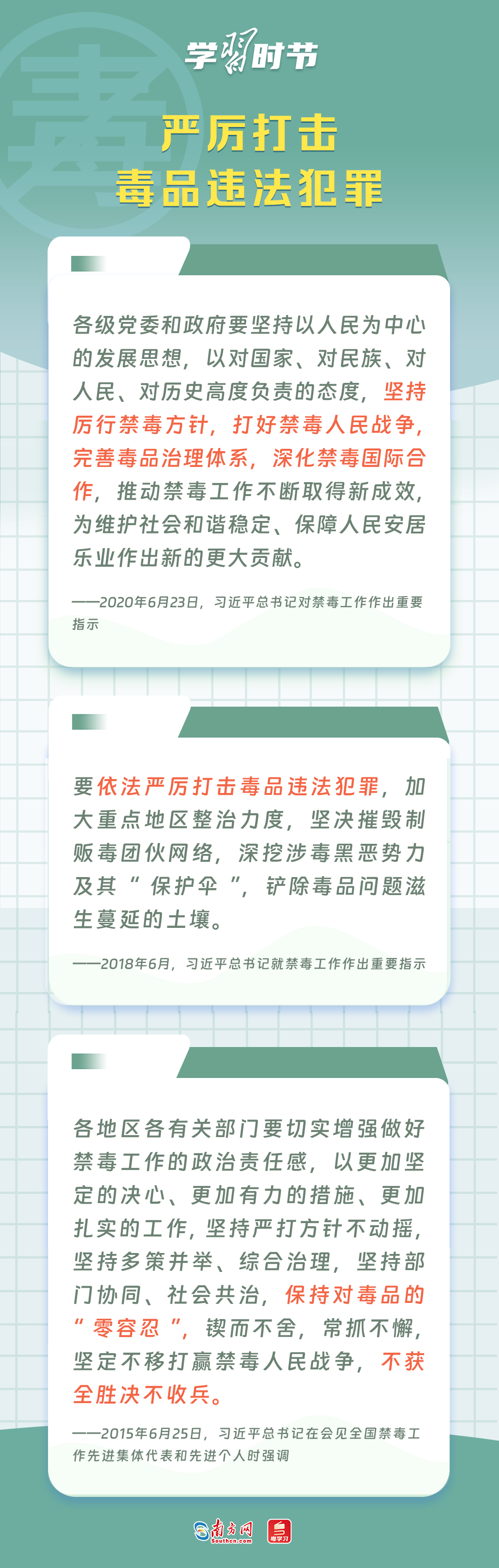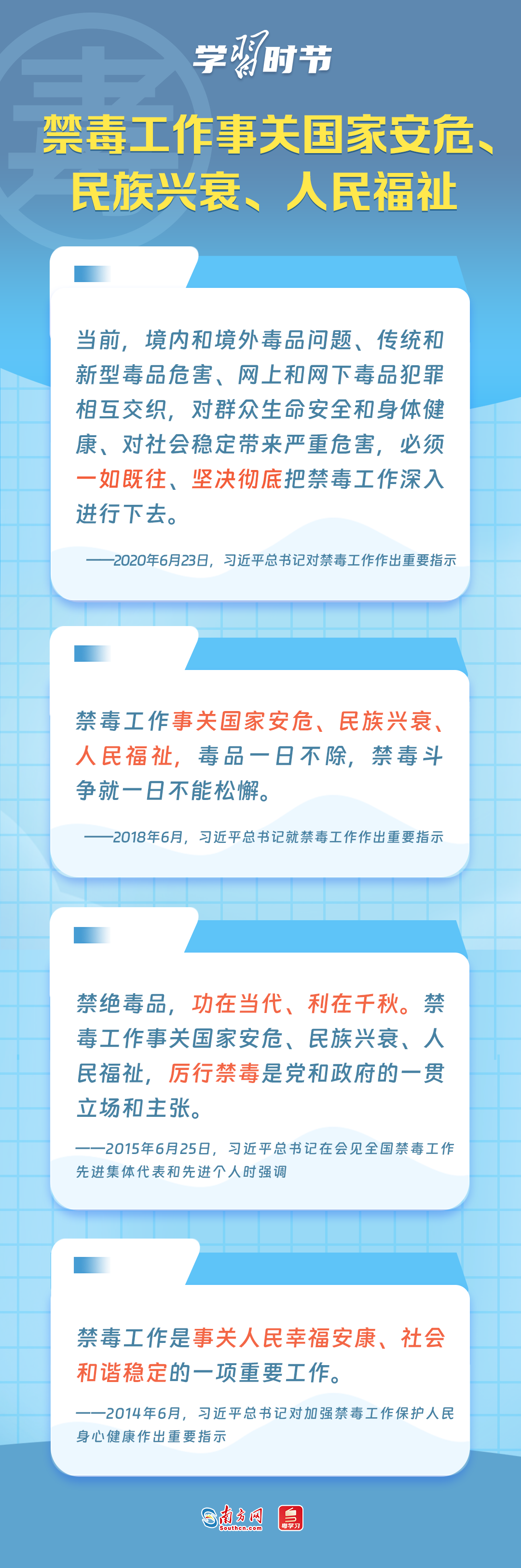 6月26日是国际禁毒日,让我们共同重温习近平总书记关于禁毒工作的重要论述,提升防毒禁毒意识。