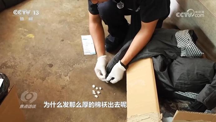 云南德宏边境管理支队瑞丽边境管理大队物流管理中队民警:“全国各地现在都处于夏天炎热的状态,你发个冬天的棉袄出去,季节上就很反常,明显感觉到有异物。为什么发那么厚的棉袄出去呢?因为可以有藏匿的空间。”