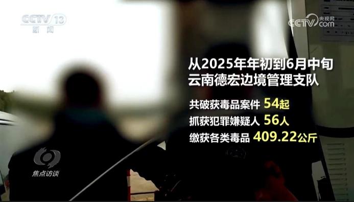 自2025年年初至6月中旬,云南德宏边境管理支队共破获毒品案件54起,抓获犯罪嫌疑人56人,缴获各类毒品409.22公斤。
